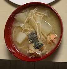 鮭の味噌汁も簡単です。北海道らしい食べ物かな?